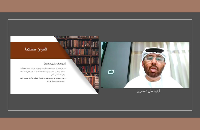 نظم مركز جمعة الماجد للثقافة والتراث في دبي، بالتعاون مع هيئة الثقافة والفنون بدبي، أمس الخميس 26 فبراير 2026، محاضرة افتراضية بعنوان: «صناعة العنوان في التراث العربي: اكتشاف الدوائر والقانون الغائب»، قدمها الأستاذ فهد علي المعمري، الباحث في التراث الشعبي والأدب العربي، وذلك بحضور لافت من المهتمين بالأدب والتراث في الوطن العربي.