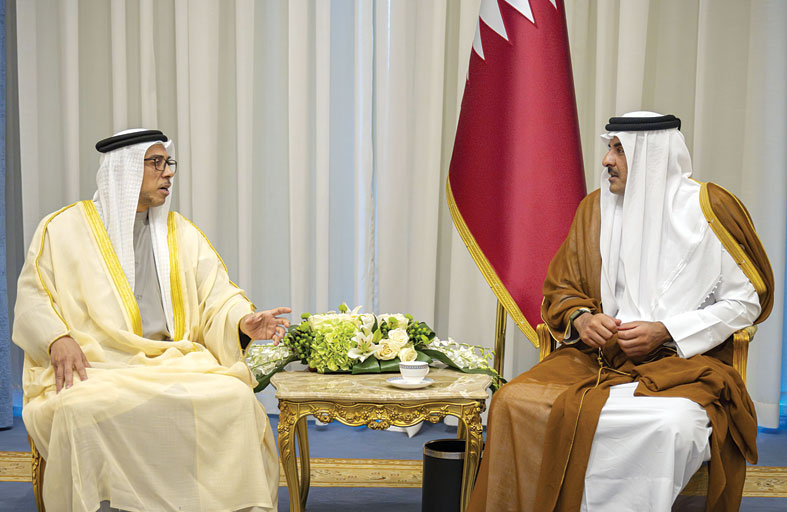 منصور بن زايد يبحث مع أمير قطر العلاقات الأخوية وعدداً من القضايا الإقليمية والدولية