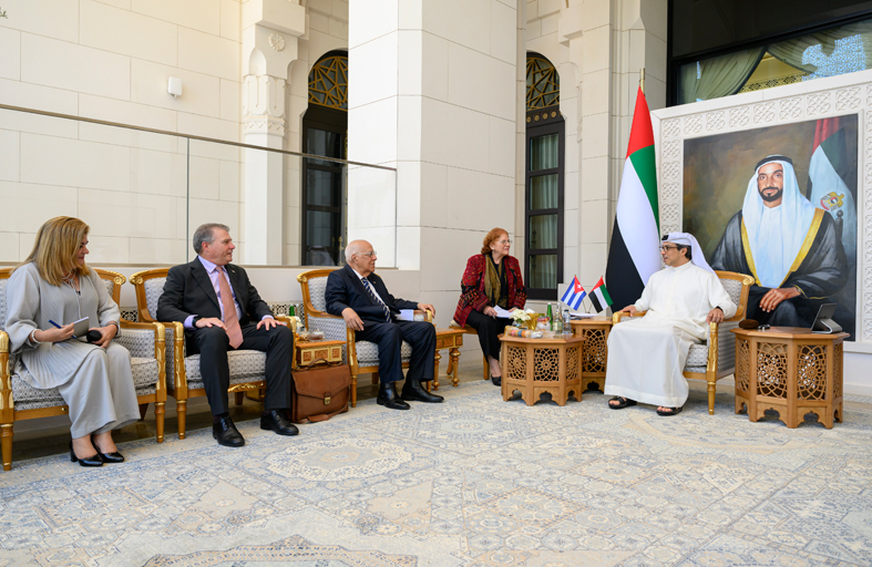 منصور بن زايد يستقبل نائب رئيس الوزراء وزير التجارة الخارجية في كوبا