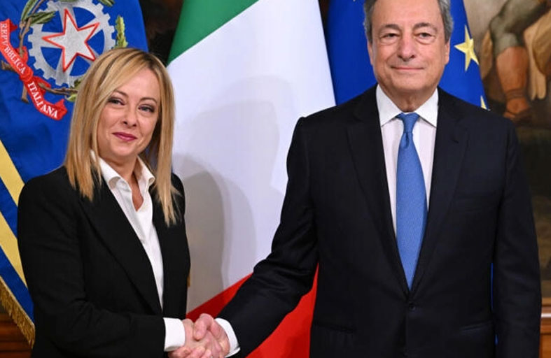 تُطوى صفحة في ايطاليا مع استلام جورجيا ميلوني مهامها كرئيسة للحكومة، غداة تأديتها اليمين الدستورية كرئيسة الوزراء الأكثر يمينية في إيطاليا منذ 1946. وسلّم ماريو دراغي، الذي ترأس حكومة ايطاليا في شباط فبراير 2021، السلطة لزعيمة حزب “فراتيلي ديتاليا” (إخوة ايطاليا) اليميني المتطرف عند الساعة 08,30 بتوقيت غرينتش في قصر كيجي مقر الحكومة، على أن تُعقد أول جلسة للحكومة عند العاشرة بتوقيت غرينتش. ويقوم دراغي خلال المراسم بتسليم قميلوني رمزيا الجرس الذي يستخدمه رئيس مجلس الوزراء لتنظيم المناقشات في الحكومة.