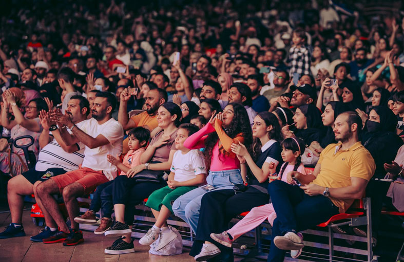 - عروض احتفالية حيث يستضيف المسرح الرئيسي في القرية العالمية على مدار شهر رمضان مجموعة متنوعة من العروض الاحتفالية المستوحاة من أجواء الشهر الفضيل بما في ذلك عرض أوركسترا أرابيسك المكونة من 30 عازف الذي يقدّم مرتين يومياً, وسيكون الضيوف كذلك على موعد مع  عرض عازفة الكمان وعرض كياليدوسكوب الضوئي.
