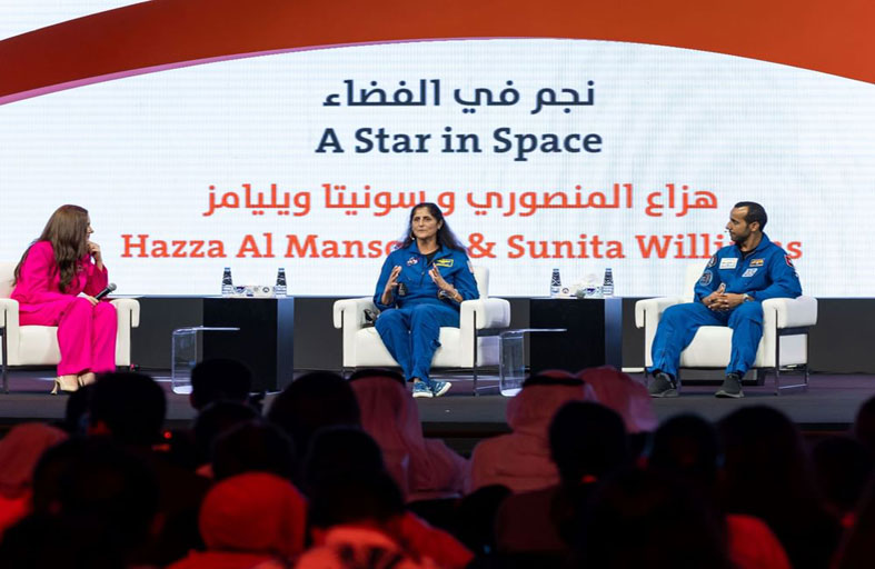 تعرف جمهور معرض الشارقة الدولي للكتاب على الكثير من القصص والتفاصيل الملهمة والمثيرة عن الفضاء خلال لقائهم برائدي الفضاء الإماراتي هزاع المنصوري والأمريكية سونيتا ويليامز وذلك في جلسة حوارية تحت عنوان "نجم الفضاء" خلال دورته الـ42 لمعرض الشارقة الدولي للكتاب التي تتواصل حتى 12 من نوفمبر الحالي.