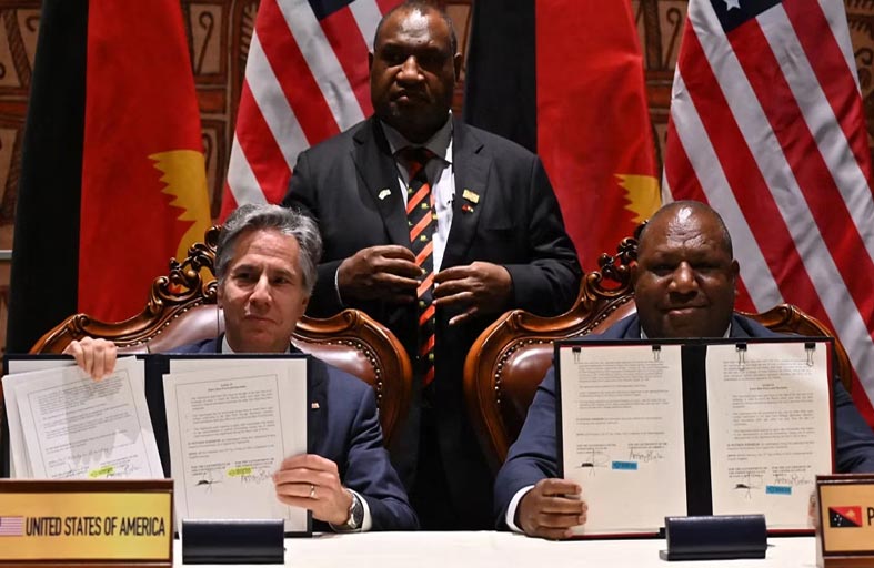 وقال الموقع إن جهود واشنطن ليست وليدة اللحظة، وإن إدارة بايدن كانت قد كرست مزيداً من الاهتمام بجزر المحيط الهادي، بما في ذلك إقامة سفارات جديدة، وإرسال مزيد من المساعدات، وترتيب عدة زيارات رفيعة المستوى، وذلك بعدما شعرت بالقلق جراء اتفاقية أمنية بين الصين وجزر سليمان العام الماضي. وفي هذا الصدد، نقل الموقع الأمريكي عن محللين عسكريين قولهم إن الاتفاقيات الأمريكية الأخيرة مع بابوا غينيا الجديدة وبالاو وميكرونيزيا تؤكد أن المنطقة “ما زالت تميل بقوة” للولايات المتحدة. وتجدر الإشارة إلى أن الولايات المتحدة تغطي أجزاء كبيرة من ميزانيات الدول الثلاث، بالإضافة إلى توفير الحماية لها، والسماح لمواطنيها بالعيش والعمل بحرية في الولايات المتحدة. وفي المقابل، يحصل الجيش الأمريكي على “وصول غير مقيد” إلى مساحة من المحيط الهادي. وكان وزير الخارجية الأمريكي، أنتوني بلينكن، قد وقع مع وزراء بابوا غينيا الجديدة، جيمس ميراب، أمس الأول الاثنين، اتفاقًا أمنيًا ستوفر واشنطن بموجبه التدريب والتمويل لمساعدة جيش البلاد في الاستجابة لتهديدات أمنية، مثل تهريب المخدرات والكوارث الطبيعية.