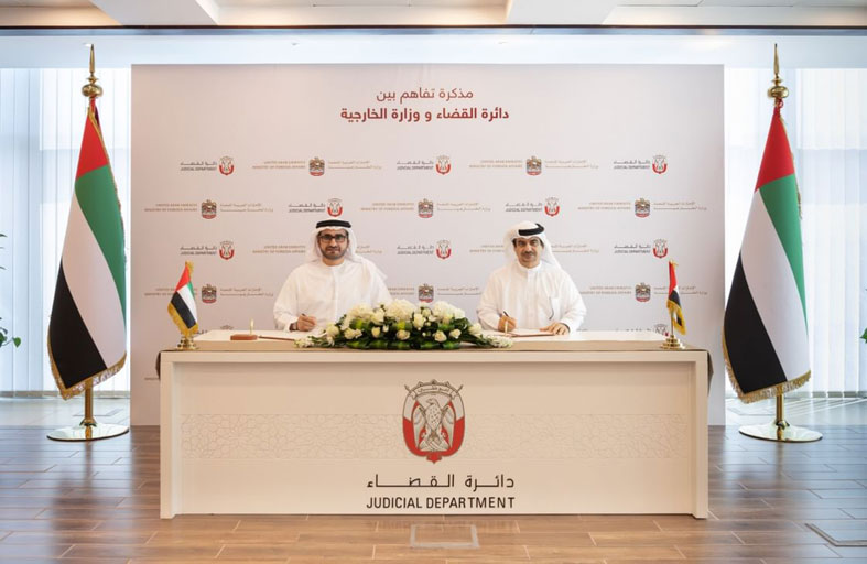 ووقّع مذكرة التفاهم كل من سعادة عمر عبيدالحصان الشامسي، وكيل وزارة الخارجية، وسعادة المستشار يوسف سعيد العبري، وكيل دائرة القضاء في أبوظبي.