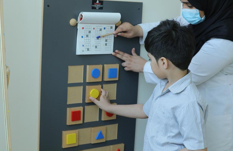وتشمل العلاج الحسي والوظيفي، علاج اضطرابات اللغة والكلام لتنمية قدرات الأطفال على التواصل، والعلاج السلوكي للمشكلات السلوكية التي تواجه الأطفال مما يساعدهم على التكيف والتعلم، فضلا عن الأنشطة الرياضية والترفيهية والموسيقية التي تهدف إلى إدماج هؤلاء الأطفال في البيئة المحلية، وبرامج الأنشطة الخارجية كالسباحة وركوب الخيل العلاجي، إضافة إلى خدمات الإرشاد والتدريب الأسري لتمكين الأسر من المشاركة في عملية التأهيل والتدريب، وخدمات التأهيل ما قبل المهني، لتحضير الطلبة لمهن وأعمال المستقبل.