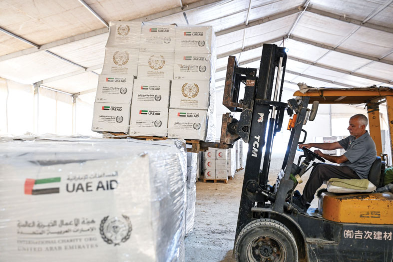 وصلت أربع طائرات مساعدات إماراتية إلى مطار العريش هذا الأسبوع، من خلال الجسر الجوي الإماراتي، ضمن عملية “الفارس الشهم 3”، وذلك في إطار الجهود الإنسانية المستمرة لدولة الإمارات العربية المتحدة لدعم الأشقاء الفلسطينيين في قطاع غزة. جاءت هذه المساعدات بدعم من عدد من المؤسسات والجمعيات الخيرية الإماراتية، وهي جمعية الإحسان الخيرية وجمعية الشارقة الخيرية وجمعية دار البر ومؤسسة حميد بن راشد النعيمي الخيرية وهيئة الأعمال الخيرية العالمية ومؤسسة صقر بن محمد القاسمي للأعمال الخيرية والإنسانية ومؤسسة حمد بن محمد الشرقي للأعمال الإنسانية وجمعية الفجيرة الخيرية. وحملت الطائرات الأربع على متنها 1442 طناً من المساعدات الإغاثية المتنوعة والتي تضمنت مواد غذائية أساسية ورمضانية، ومستلزمات صحية، وخيام إيواء، وطرود أطفال حديثي الولادة واحتياجات ضرورية تهدف إلى التخفيف من معاناة الأسر المتضررة داخل قطاع غزة، في ظل الأوضاع الإنسانية الصعبة التي يمر بها السكان.