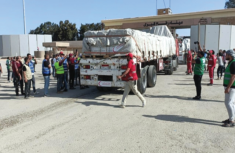 هذا وتستمر المساعدات الإغاثية لضحايا الحرب في الوصول عبر معبر رفح الحدودي، وسط تصاعد وتيرة القصف على جميع أنحاء قطاع غزة.