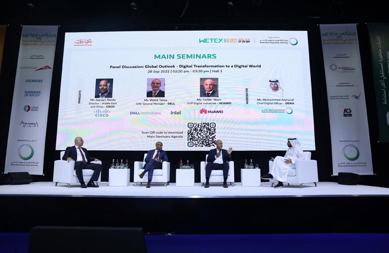 وأوضح الطاير: “بوصفها المزود الحصري والوحيد للكهرباء والمياه في دبي، تسهم هيئة كهرباء ومياه دبي في دعم استراتيجية دبي للطاقة النظيفة 2050 واستراتيجيتها للحياد الكربوني 2050، لتوفير 10% من القدرة الإنتاجية للطاقة من مصادر الطاقة النظيفة بحلول العام 2050، من خلال باقة من المشاريع والمبادرات الرائدة، ومن أبرزها مجمع محمد بن راشد آل مكتوم للطاقة الشمسية،أكبر مجمع للطاقة الشمسية في موقع واحد على مستوى العالم، ومن بين عوامل التمكين الرئيسة التي نعتمدها في مسيرة الاستدامة: الابتكار والتحول الرقمي والتقنيات الإحلالية للثورة الصناعية الرابعة، فالرقمنة ضرورية لدمج عدد كبير من المتغيرات المرتبطة بالطاقة المتجددة ضمن نظام الطاقة.”.من جانبه قال سعادة المهندس يوسف أحمد آل علي، الرئيس التنفيذي لـ”لاتحاد للماء والكهرباء”، إن معرض تكنولوجيا المياه والطاقة والبيئة (ويتيكس) ودبي للطاقة الشمسية، يمثل منصة دولية رائدة في “الاستدامة” بمفهومها الشامل وبمختلف أبعادها، ونافذة كبيرة يطل منها العالم على أحدث ما تم التوصل إليه في مجالات الطاقة النظيفة، وإدارة الطاقة النظيفة لتحلية المياه، وحلول أزمة تغير المناخ، والآفاق المستقبلية للذكاء الاصطناعي، وغيرها ضمن قائمة اهتمامات قيادة دولة الإمارات والعالم على طريق بناء المستقبل وحفظ حق الأجيال المقبلة في الموارد والثروات، مع ترسيخ مكانة دولة الإمارات كإحدى أهم البقاع التي يتم من خلالها صياغة مستقبل الاستدامة والاقتصاد الأخضر على مستوى العالم.وأكد حرص “الاتحاد للماء والكهرباء” على التواجد في معرض تكنولوجيا المياه والطاقة والبيئة (ويتكس) ودبي للطاقة الشمسية، للتعرف عن قرب على أحدث التقنيات ذات العلاقة بمجالات الخدمة التي تقدمها، وتعزيز أواصر التعاون وتبادل الخبرات مع ممثلي القطاعات ذات الصلة، فضلاً عما يتيحه ذلك التواجد من إمكانية للتعرف على احتياجات السوق واستكشاف الفرص الاستثمارية، موجهاً شكره للقيادة الرشيدة التي كان لتوجيهاتها الحكيمة الفضل في وجود وبروز هذا المعرض كحدث دولي مهم ترنو إليه أنظار العالم وأصحاب الاختصاص كل عام.