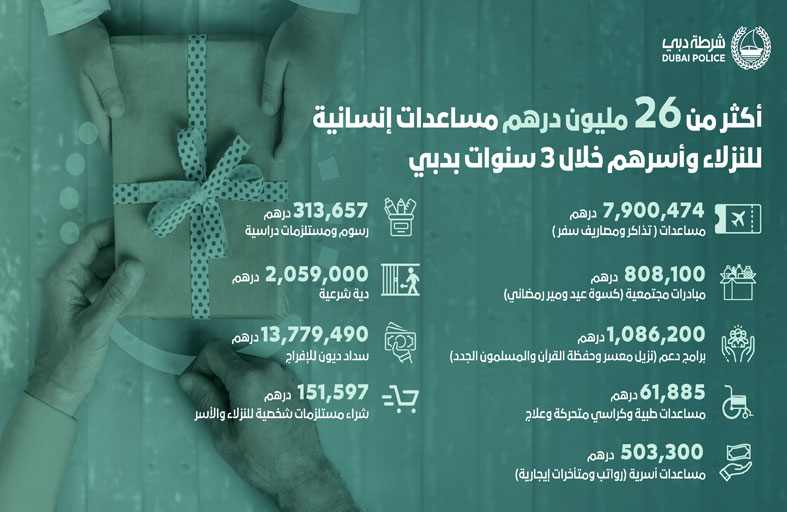 26 مليون درهم مساعدات إنسانية للنزلاء وأسرهم خلال 3 سنوات في دبي