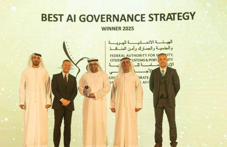 فازت الإدارة العامة للهوية وشؤون الأجانب – دبي، ممثلةً في قطاع الخدمات الرقمية، بجائزة "أفضل إستراتيجية لحوكمة الذكاء الاصطناعي لعام 2025"، التي تمنحها منظمة "AI Awards Series"، وذلك تقديراً لجهودها في تطوير وتطبيق منهجيات رائدة في حوكمة تقنيات الذكاء الاصطناعي.