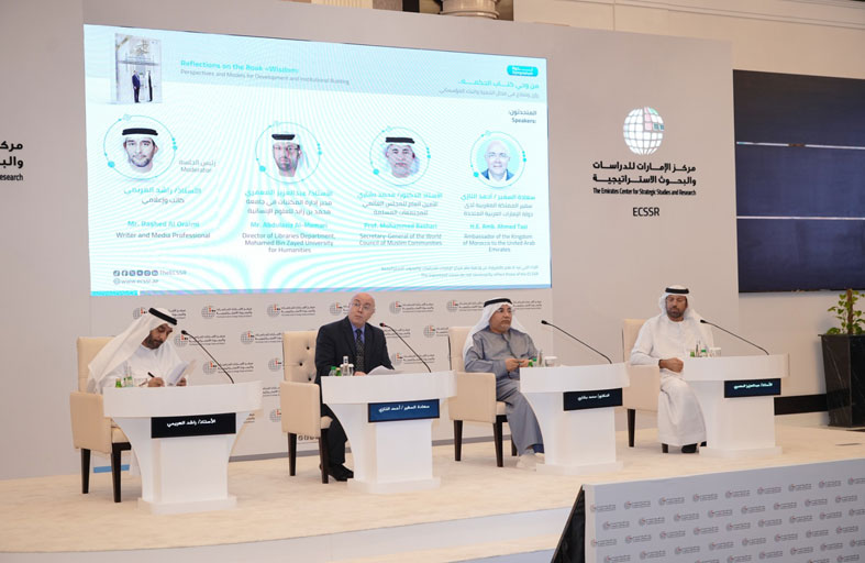 أقام مركز الإمارات للدراسات والبحوث الاستراتيجية، يوم أمس الأول الأربعاء، بمقره في أبوظبي، جلسة نقاشية حول كتاب "الحكمة: صاحب الجلالة الملك محمد السادس وصاحب السمو الشيخ محمد بن زايد آل نهيان - رؤى ونماذج في التنمية والبناء المؤسساتي"، الذي شارك في تأليفه معالي الأستاذ الدكتور جمال سند السويدي، نائب رئيس مجلس أمناء مركز الإمارات للدراسات والبحوث الاستراتيجية، ونخبة من المفكرين والباحثين الإماراتيين والمغاربة، أعقبها حفل توقيع الكتاب.