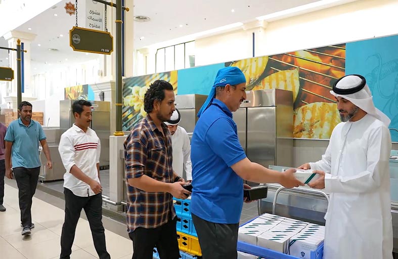 «الشارقة لإدارة الأصول» توزع 300 وجبة إفطار صائم يوميا على العاملين في أسواق الجبيل