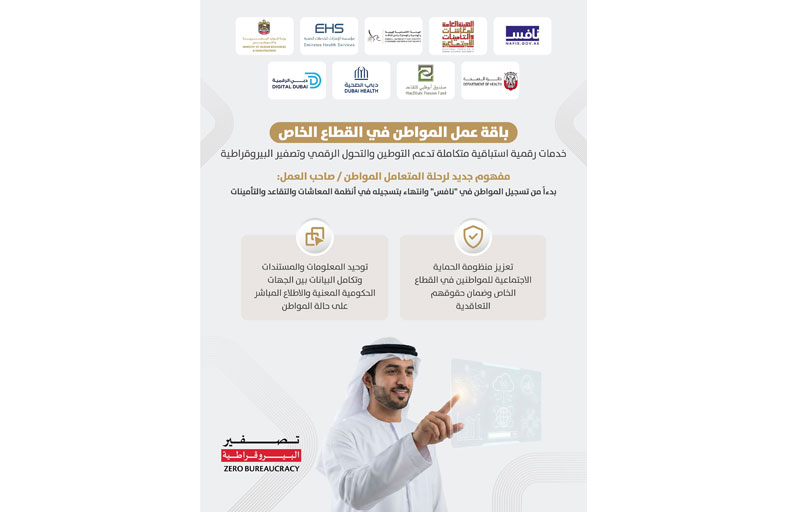 وتستهدف الباقة توحيد المعلومات والمستندات المطلوبة بين الجهات المنظمة وضمان تسجيل كافة المواطنين العاملين في القطاع الخاص في أنظمة المعاشات والتقاعد والتأمينات في الدولة وتعزيز تكامل الأنظمة الرقمية لتقديم خدمات سريعة وفعالة.