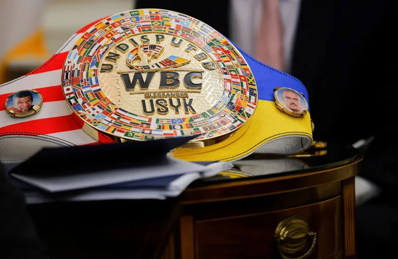 وقد تم تسليم الحزام الذي أحرزه أوسيك في بطولة العالم للوزن الثقيل "WBC" سنة 2021 في نزاله ضد البريطاني تايسون فيوري العام الماضي، خلال الاجتماع الذي عقد في المكتب البيضاوي.