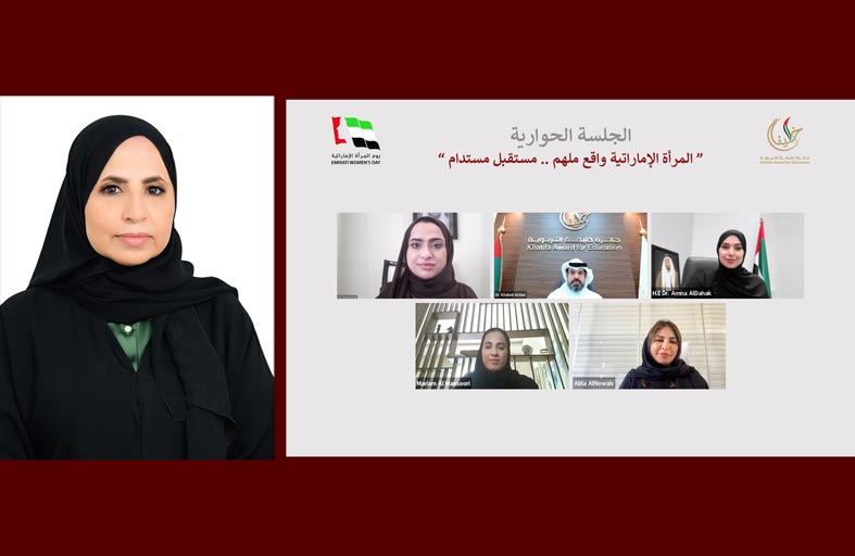 جاء ذلك خلال الجلسة الحوارية التي نظمتها الأمانة العامة لجائزة خليفة التربوية عن بعد بعنوان " المرأة الإماراتية مسيرة ازدهار وطني مستدام " وذلك تزامناً مع احتفالات الدولة بيوم المرأة الإماراتية - تحت شعار " واقع ملهم .. مستقبل مستدام " والذي يصادف يوم 28 أغسطس من كل عام.