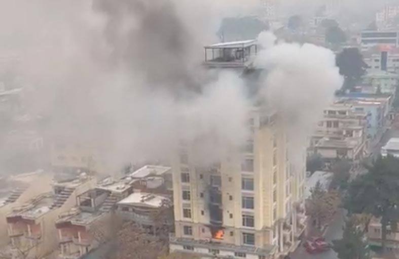 وأظهرت مقاطع مصورة تمت مشاركتها بين صحفيين وعبر وسائل التواصل الاجتماعي الفندق وهو يحترق، إلا أنه لم يتم التحقق من المحتوى على الفور.