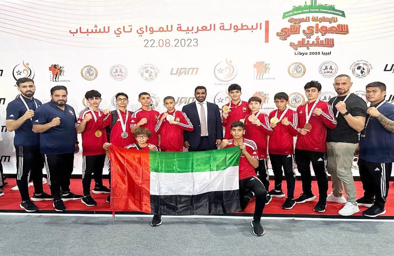 حصد أبطال منتخب الإمارات للشباب 5 ميداليات ملونة (ذهبيتان، وفضيتان، وبرونزية) في اليوم الختامي من منافسات البطولة العربية للمواي تاي للشباب، التي أقيمت في ليبيا بمشاركة 200 لاعب ولاعبة.