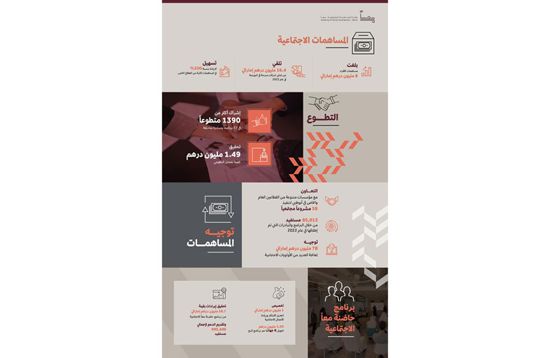 كشفت هيئة المساهمات المجتمعية "معاً" عن زيادة في مساهمات الأفراد بنسبة 32% خلال عام 2022؛ ما يعادل 6 ملايين درهم إماراتي، إلى جانب تسهيل الزيادة في المساهمات المالية من القطاع الخاص لتصل إلى إلى 16 مليون درهم إماراتي مقارنة بـ4.6 مليون درهم إماراتي في عام 2021. جاء ذلك فى تقرير الأثر الاجتماعي لهيئة “ معا ” لعام 2022 الذى أصدرته الهيئة لرصد إنجازاتها في ثلاثة مجالات رئيسية، وهي المشاركة المجتمعية الفعالة والاستدامة في المساهمات وتمكين القطاع الثالث حيث سجلت هيئة "معاً" حيث يُبرز التقرير النتائج المهمة على صعيد إيجاد حلول مستدامة لمعالجة الأولويات الاجتماعية التي تحظى باهتمام الفرد والمجتمع، ونمو القطاع الثالث، وتطوير مجتمع مترابط ومتعاون في العاصمة أبوظبي. وذكر التقرير أن الهيئة استقبلت مساهمات بقيمة 5.38 مليون درهم إماراتي من الأفراد عن طريق مختلف القنوات، بما في ذلك منصة سداد أبوظبي والمساهمات ومنصة معاً والرسائل النصية وأجهزة الصرّاف الآلي والإيداع المباشر وانستاشوب وغيرها فيما نفذت معاً 58 برنامجاً تحقق أثراً اجتماعياً من خلال التعاون المثمر مع مؤسسات القطاع الثالث والهيئات الحكومية وشركات القطاع الخاص، استفاد منها أكثر من 85 ألف شخص.