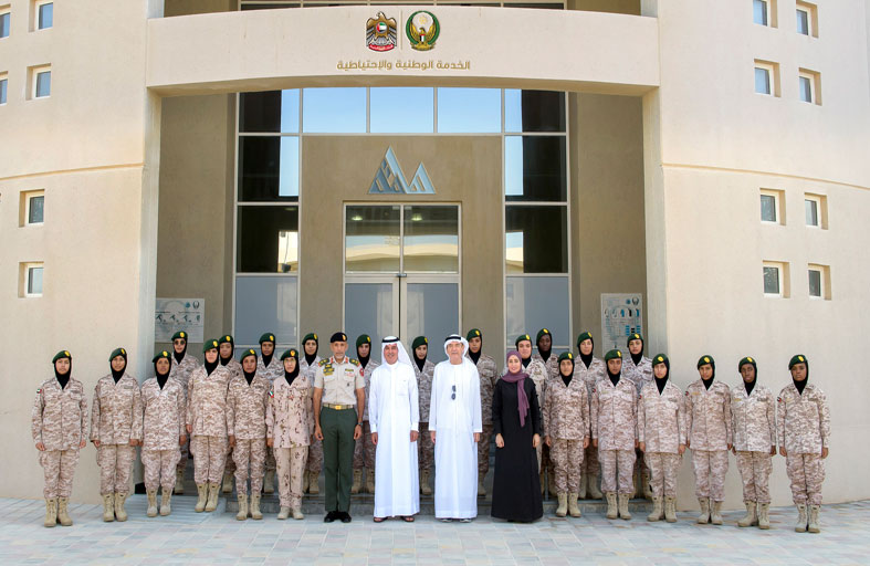 استقبل اللواء الركن طيار الشيخ أحمد بن طحنون بن محمد آل نهيان رئيس هيئة الخدمة الوطنية والاحتياطية، ومعالي عهود بنت خلفان الرومي وزيرة دولة للتطوير الحكومي والمستقبل، معالي زكي أنور نسيبة المستشار الثقافي لصاحب السمو رئيس الدولة، الرئيس الأعلى لجامعة الإمارات العربية المتحدة، ومعالي عبد العزيز الغرير رئيس مجلس أمناء مؤسسة عبد الله الغرير، في زيارة لمجندات الدفعة الحادية عشرة للخدمة الوطنية المشاركات في مبادرة "هامَة" لتمكين المجندات بمهارات المستقبل، في مدرسة خولة بنت الأزور العسكرية.