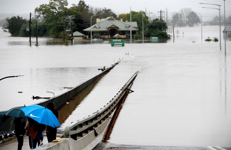وفي كل منطقة غرب سيدني، فاضت الأنهار وتحولت مناطق واسعة إلى بحيرات بينما اجتاحت المياه الموحلة المنازل ما أدى إلى قطع الطرق والجسور.