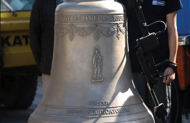 دقت ثلاثة أجراس قادمة من النورماندي الفرنسية في مدينة الموصل في شمال العراق، بحضور المديرة العامة لمنظمة الأمم المتحدة للتربية والعلم والثقافة (يونسكو) أودري أزولاي، فيما تتواصل إعادة إعمار تراث هذه المدينة بعد دمارها إثر سيطرة داعش. وتشرف اليونسكو من خلال مبادرة “إحياء روح الموصل”، على إعادة إعمار الموصل القديمة، حيث يجري حالياً تأهيل كنائسها ومسجد النوري ومئذنته الحدباء التي يبلغ عمرها 850 سنة ومئة منزل في البلدة القديمة. وبمناسبة زيارتها الأولى للعراق، توجهت أزولاي الثلاثاء إلى الموصل، حيث التقت بمهندسين في مواقع تأهيل الموصل القديمة واطلعت على سير العمل، كما شاهد مراسل في فرانس برس. في كنيسة سيدة الساعة التي أعيد بناؤها حديثا “بالحجر المذهل، المذهب قليلاً مثل الخبز”، كما وصفه الأب الدومينيكاني أوليفييه بوكيون، سمع الحضور قرع ثلاثة أجراس وصلت حديثاً من فرنسا ورفعت في برجها.