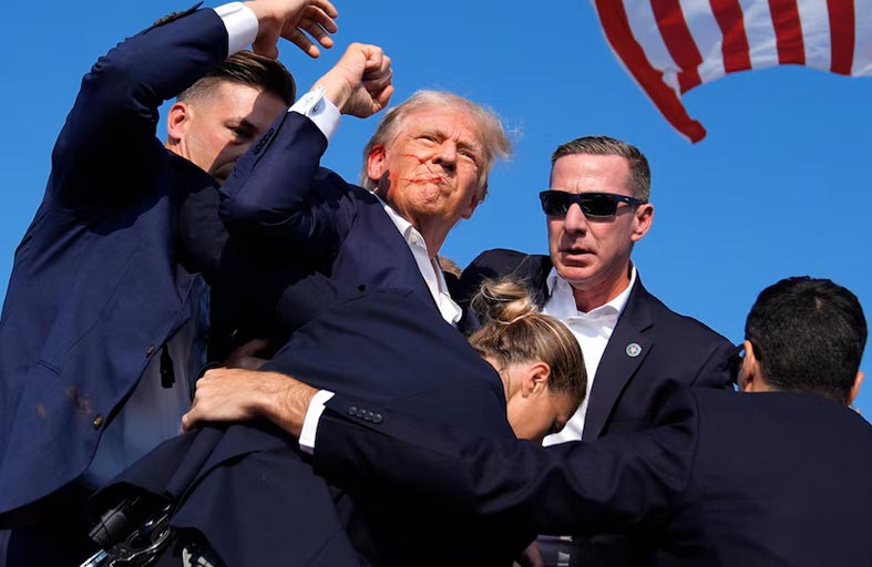 ففي خضم تجمع انتخابي في بنسيلفانيا وفي حين كان دونالد ترامب يلقي خاطبا معتمرا قبعته الحمراء الشهيرة، سمع أزيز رصاص. وضع الرئيس السابق يده سريعا على أذنه وارتسمت على وجهه ملامح الألم. وتعالت صيحات الذعر فيما انقض عليه عناصر جهاز الخدمة السرية لحمايته ونقله إلى مكان آمن.