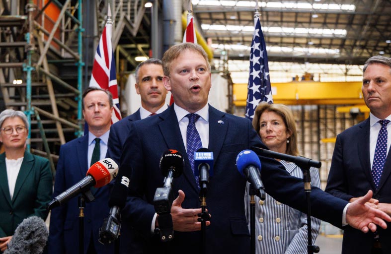 وتشارك أستراليا والمملكة المتحدة إلى جانب الولايات المتحدة في تحالف اوكوس الدفاعي الناشئ الذي شكل في أيلول-سبتمبر 2021 للجم توسع الصين العسكري في منطقة آسيا المحيط الهادئ.