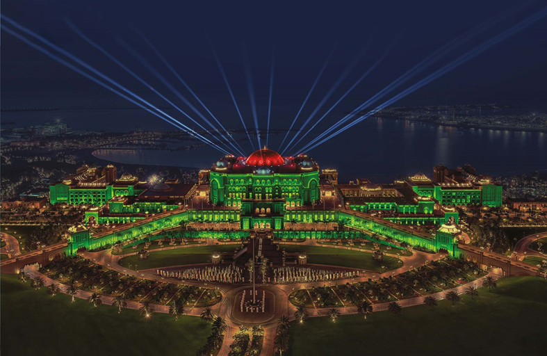 يحتفل فندق قصر الإمارات بعيد الاتحاد الخمسين للدولة , اذ تضاء مباني القصر ليلاً بالوان العلم الاماراتي فيما تسطع اضواء الليزر لتضفي بهجة وفرحاً بهذه المناسبة الوطنية المجيدة، ويستعد القصر لاقامة عرض ضخم للالعاب النارية مساء الثاني من ديسمبر.