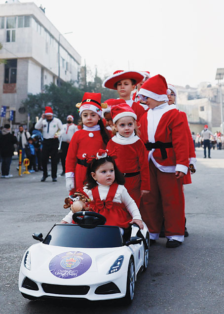 أطفال مسيحيون سوريون يحتفلون بعيد الميلاد في باب توما، دمشق، سوريا. رويترز