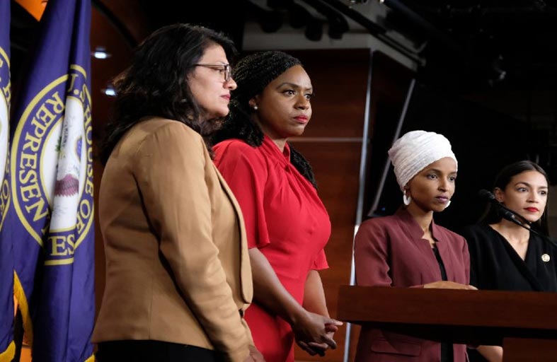إلهان عمر، ممثلة مينيسوتا، وأيانا بريسلي عن ولاية ماساتشوستس، ورشيدة طليب، النائب عن ميشيغان، الثلاثة أعيد انتخابهن في نوفمبر الماضي، ويشكلن مع الكسندريا أوكاسيو كورتيز، فريقا صداميا، نوع من المنتقمين يمثلون اليسار الأمريكي في الكونجرس. هؤلاء النسوة، وجميعهن من الأقليات الدينية أو العرقية، يدافعن عن حقوق الطبقات الوسطى، ومن أجل تكافؤ أفضل، وحقوق المثليين والمثليات ومزدوجي الميل الجنسي ومغايري الهوية الجنسانية والمتحولين جنسيًا، ومن أجل وضع خطة حقيقية لحماية البيئة من خلال “الصفقة الخضراء الجديدة».