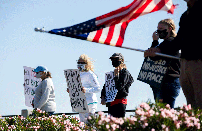 على جانب من طريق في تشارلستون، يلوّح رجل بعلم كونفدرالي ضخم. في الجانب الآخر، متظاهرون يرفعون لافتة كتب عليها “العنصرية تقتل”. في ولاية كارولاينا الجنوبية، تبقى التوترات حادة حول تاريخ العبودية، مسلطة الضوء على أبرز الانقسامات المتعلقة بانتخابات الثالث من تشرين الثاني-نوفمبر.