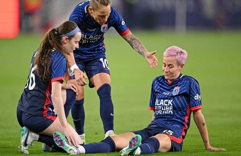 انتهت المشاركة الأخيرة للنجمة المخضرمة ميغان رابينو في ملاعب كرة القدم بعد ثلاث دقائق من بدايتها خلال مشاركتها مع فريقها أو إل ريجن في نهائي الدوري الأمريكي للسيدات.
