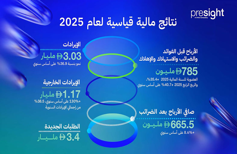 وخلال السنة المالية 2025، حازت بريسايت على طلبات جديدة بقيمة 3.4 مليار درهم، بما في ذلك 979 مليون درهم خلال الربع الأخير من العام.