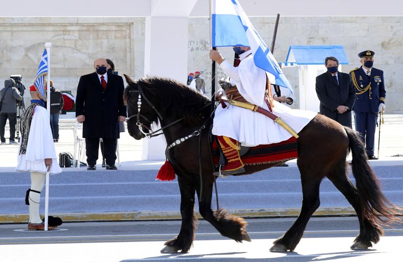 وسيطلق المدفع التقليدي على تلة ليكابيتوس المطلة على وسط أثينا، 21 طلقة صباح أمس الخميس قبل أن يضع القادة الأجانب أكاليل الزهر أمام النصب التذكاري للجندي المجهول في ساحة سينتاغما.
