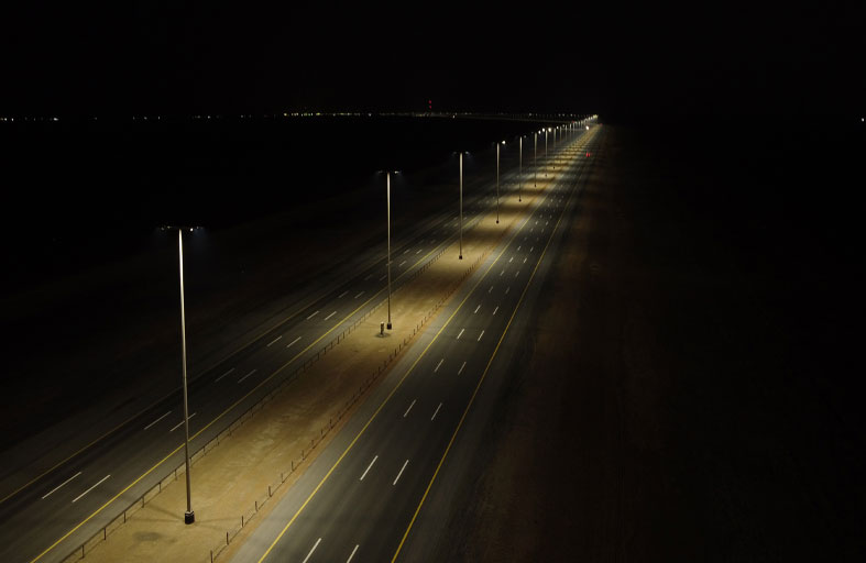استبدال 5,581 كشاف إنارة جديد على طريق الرويس العابر