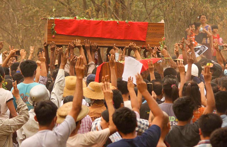 تتواصل مراسم تشييع ضحايا القمع في نهاية الاسبوع. في منطقة ساغاينغ (وسط) وجه مئات الأشخاص تحية الى ثينزار هين، وهي طالبة تمريض تبلغ من العمر عشرين عاما قتلت بالرصاص حين قدمت لمساعدة رجال الاسعاف في معالجة أحد المصابين.
