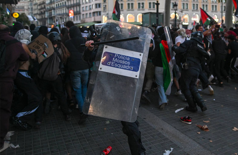قالت الشرطة الإسبانية أمس الأحد إنها اعتقلت ثمانية أشخاص وإن 20 شرطيا أصيبوا في اشتباكات مع متظاهرين داعمين للفلسطينيين في برشلونة.