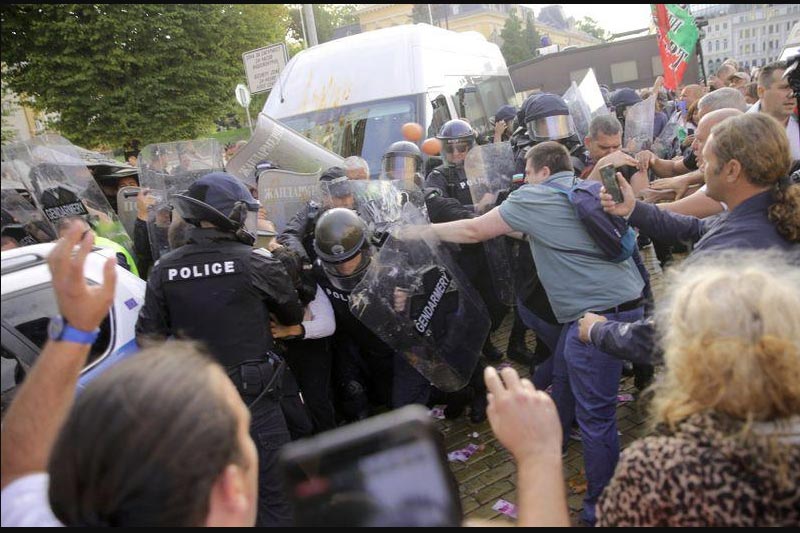 احتشد آلاف البلغار أمام مقر البرلمان في صوفيا أمس الأربعاء في أحد أكبر الاحتجاجات حتى الآن خلال شهرين من المظاهرات التي تطالب باستقالة رئيس الوزراء بويكو بوريسوف. ووقعت مناوشات بين المحتجين والشرطة التي أطلقت عليهم رذاذ الفلفل واعتقلت كثيرين منهم. ورمى المحتجون مبنى البرلمان، الذي يخضع لحراسة مشددة، بالبيض والتفاح والقمامة.