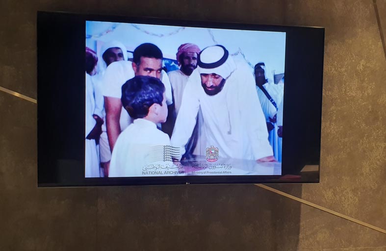 وأما الشاشة الثانية فتبرز جوانب من نشأة الزراعة وتطورها؛ فهي التي غيرت وجه البيئة الإماراتية على يدي المغفور له -بإذن الله- الشيخ زايد بن سلطان آل نهيان الذي أضفى على الطبيعة لمسة خضراء زاهية، بعد أن أطلق قوله الشهير: "أعطوني زراعة أضمن لكم حضارة"، وما قدمه الأرشيف والمكتبة الوطنية في المنصة عن الزراعة ليس إلا تذكيراً بالجهود الكريمة للشيخ زايد في هذا الميدان، وقد سبق أن صدر عن الأرشيف والمكتبة الوطنية العديد من الكتب التي وثقت عبقرية الشيخ زايد في مجال الزراعة وتحسين البيئة.