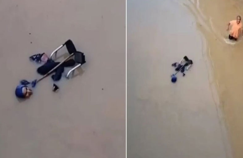 الأمطار تجرف سيدة على كرسيها المتحرك