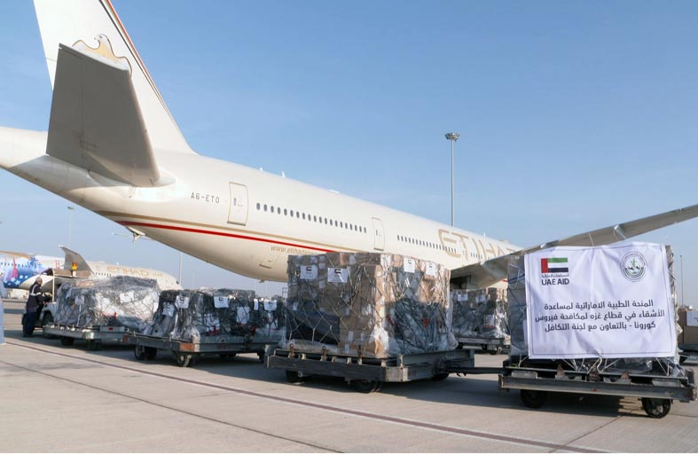 أرسلت دولة الإمارات، أمس طائرة مساعدات طبية ثالثة تحتوي على 14.4 طن من الإمدادات الطبية وأجهزة الفحص إلى الأشقاء في قطاع غزة، بالتعاون مع لجنة التكافل في القطاع، يستفيد منها أكثر من 14 ألفا من العاملين في مجال الرعاية الصحية، لتعزيز جهودهم في احتواء انتشار فيروس كورونا المستجد.
