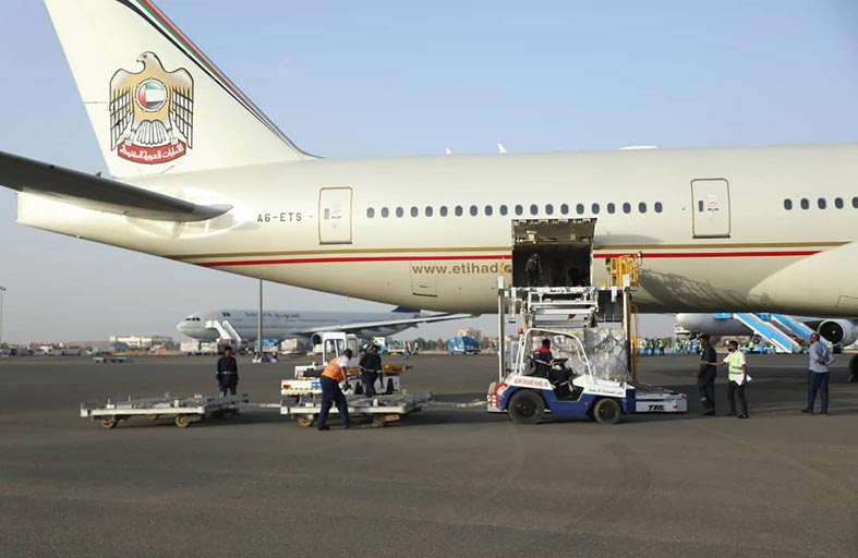 أرسلت دولة الإمارات امس طائرة مساعدات تحتوي على 50 طنا من المواد الغذائية، إلى جمهورية السودان، والتي تأتي ضمن المبادرات الإنسانية خلال شهر رمضان المبارك، لتلبية احتياجات آلاف الأسر من ذوي الدخل المحدود، خاصة المتأثرة بالأوضاع الصحية الراهنة، وتعزيز قدرتها في التصدي للتحديات الاجتماعية والاقتصادية التي فرضتها جائحة "كوفيد-19".