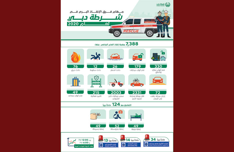 الإنقاذ البري في شرطة دبي ينفذ 7388 مهمة العام الماضي