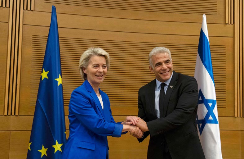 من جهته وصف لابيد إثر اجتماعه بفون دير لايين العلاقات الثنائية بين الاتحاد الأوروبي والدولة العبرية بـ”الفرصة الاستراتيجية».
