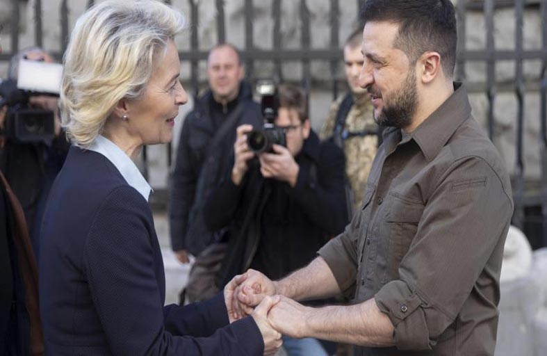 لقد قدمت أوكرانيا ترشّحها، بعد أربعة أيام من بدء الهجوم الروسي، وفي 8 أبريل بكييف، أكدت رئيسة المفوضية الأوروبية، أن الدولة المنكوبة تنتمي إلى “الأسرة الأوروبية”، وسلّمت أورسولا فون دير لاين استبيانين للرئيس فولوديمير زيلينسكي، وهي الخطوة الأولى في دراسة ملف العضوية.
