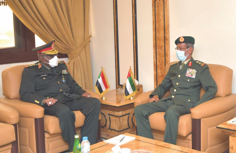 و رحب رئيس أركان القوات المسلحة برئيس هيئة أركان القوات المسلحة السودانية و استعرضا علاقات التعاون الأخوية القائمة بين دولة الإمارات وجمهورية السودان الشقيقة وسبل تعزيزها، وما تشهده من تطور على مختلف الصعد، خاصة ما يتعلق منها بالتنسيق العسكري والتعاون الدفاعي بين البلدين الشقيقين.
