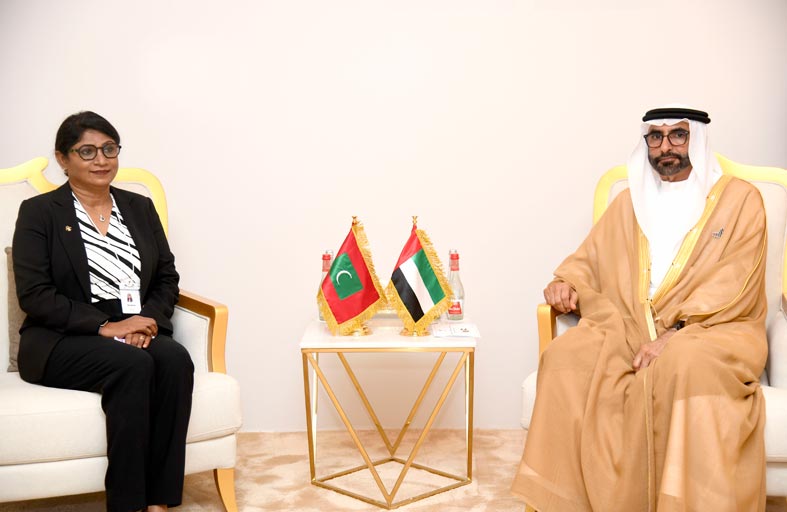 التقى معالي محمد بن أحمد البواردي وزير الدولة لشؤون الدفاع بمكتبه بمعرضي يومكس وسيمتكس 2022 امس معالي ماريا ديدي وزيرة الدفاع في جمهورية المالديف التي تزور البلاد حاليا لحضور فعاليات المعرضين والوفد المرافق بحضور سعادة مطر سالم الظاهري وكيل وزارة الدفاع و عدد من كبار ضباط و مسؤولي الوزارة. و رحب وزير الدولة لشؤون الدفاع بزيارة وزيرة دفاع المالديف معربا عن تطلعه لأن تسهم الزيارة في فتح مجالات وآفاق التعاون والعمل المشترك على مدى العقود القادمة و تحقيق الأهداف المشتركة بين البلدين . بحث الجانبان خلال اللقاء عددا من الموضوعات ذات الاهتمام المشترك خاصة في المجالات الدفاعية و العسكرية و سبل تعزيزها وإمكانيات تطويرها وتبادلا وجهات النظر حول عدد من القضايا والموضوعات التي تهم البلدين والمستجدات الإقليمية والدولية.
