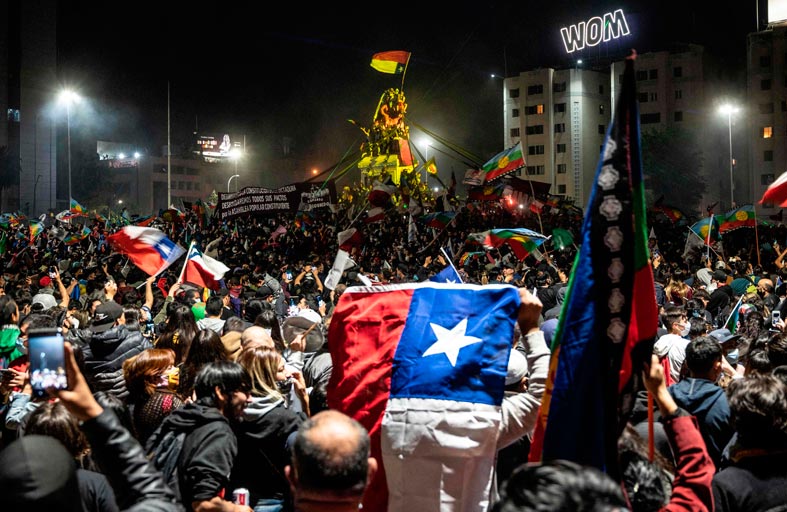 وفي وقت كان فرز الأصوات لا يزال متواصلًا، تجمّع آلاف المتظاهرين المبتهجين في وسط سانتياغو، في ساحة “بلازا إيطاليا”، مركز الاحتجاجات، احتفالًا “بالنصر”، حسب مشاهدات صحافيّي وكالة فرانس برس.