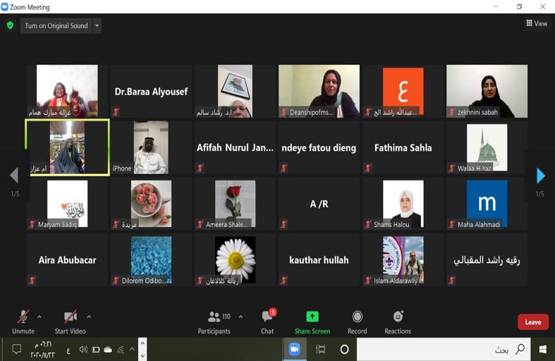 نظمت عمادة شؤون الطالبات في الجامعة القاسمية وعبر تقنية التواصل المرئي جلسة وطنية بعنوان "بلادي ماضينا وحاضرنا" تهدف الى ترسيخ قيم الوطنية وإبراز إنجازات الدولة وبيانها أمام طلبتها كجزء من رسالة الجامعة التعليمية .