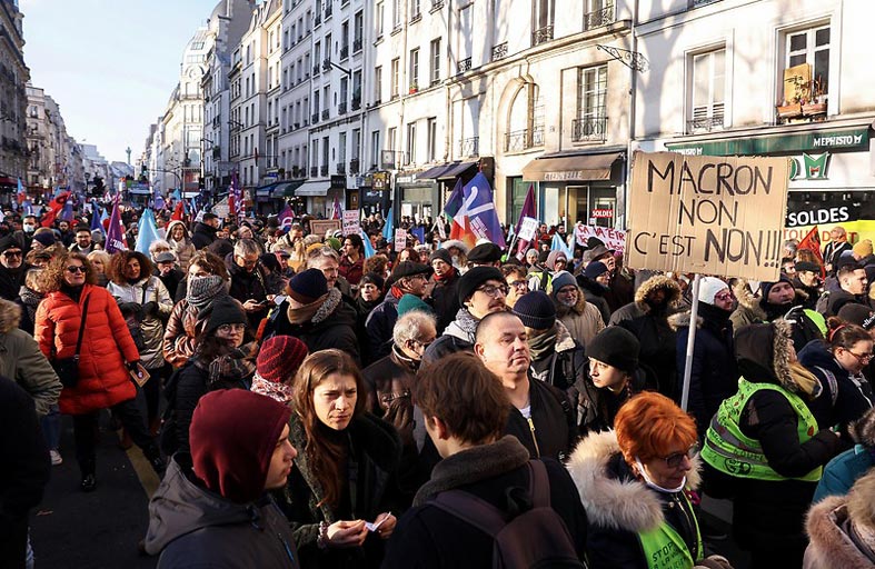 وزيادة السنّ الأدنى للتقاعد من 62 عاماً حالياً إلى 64 عاماً، جزء من حزمة إصلاحات رئيسية اقترحها الرئيس إيمانويل ماكرون لضمان التوازن المالي لنظام التأمين الاجتماعي في فرنسا، وبعد احتجاجات النقابات ضد البرنامج، خرج أكثر من مليون شخص إلى الشـــــوارع في أنحاء فرنسا في 19 يناير(كانون الثاني) الجاري..